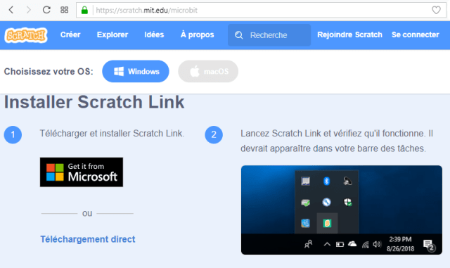 Il est possible de piloter le Micro:bit (en Bluetooth 4.0) avec Scratch (et Scratch Link). Le principe est différent de MakeCode. En effet, le Micro:bit n’est pas autonome, il est télécommandé en Bluetooth par l’ordinateur et il exécute au fur et à mesure les instructions qu’il reçoit. Cela permet, par exemple de piloter un robot mais aussi d’interagir avec le lutin. La procédure ainsi que des exemples de de code sont disponibles sur le site de Scratch.