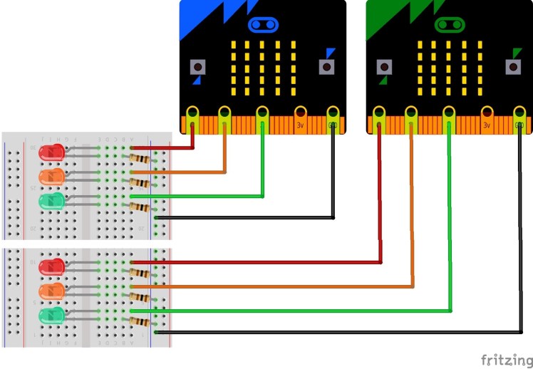 Le branchement est exactement le même, mais avec 2 Micro:Bit.