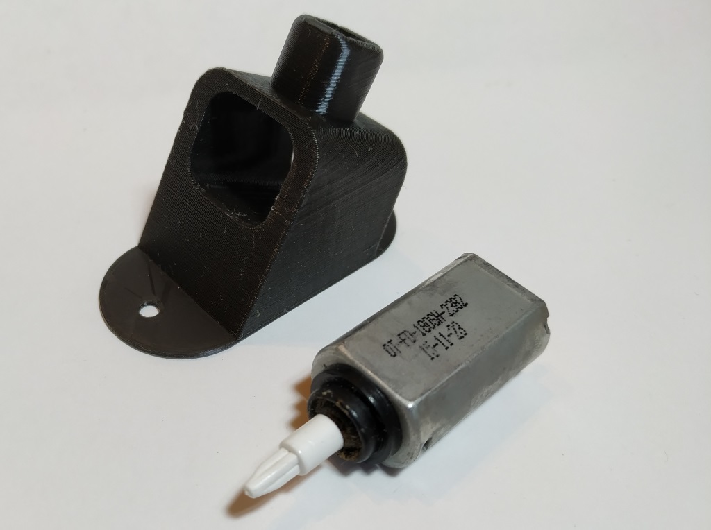 Le choix du moteur est très important, il doit être assez gros pour faire vibrer la brosse. J’ai récupéré le mien sur une vieille brosse à dent électrique, il y a quelques années. A l’époque, je ne savais pas encore ce que j’allais en faire, mais je suis content de ne pas l’avoir jeté. L’avantage de ce moteur c’est qu’il fonctionne parfaitement avec 2 piles rechargeables de type AA (c’est à dire une tension inférieure à 3V). Si vous possédez un moteur 5V, vous pourez l’alimenter avec 3 piles AA (ou AAA), mais si votre moteur a besoin de 12V (par exemple un ventilateur de PC), il faudra au moins une pile de 9V de type 6LR61 et elle risque de se décharger très rapidement.