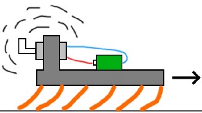 Le principe de fonctionnement du robot est très simple, les vibrations produises par le moteur font bouger les poils qui poussent la brosse en se détendant.