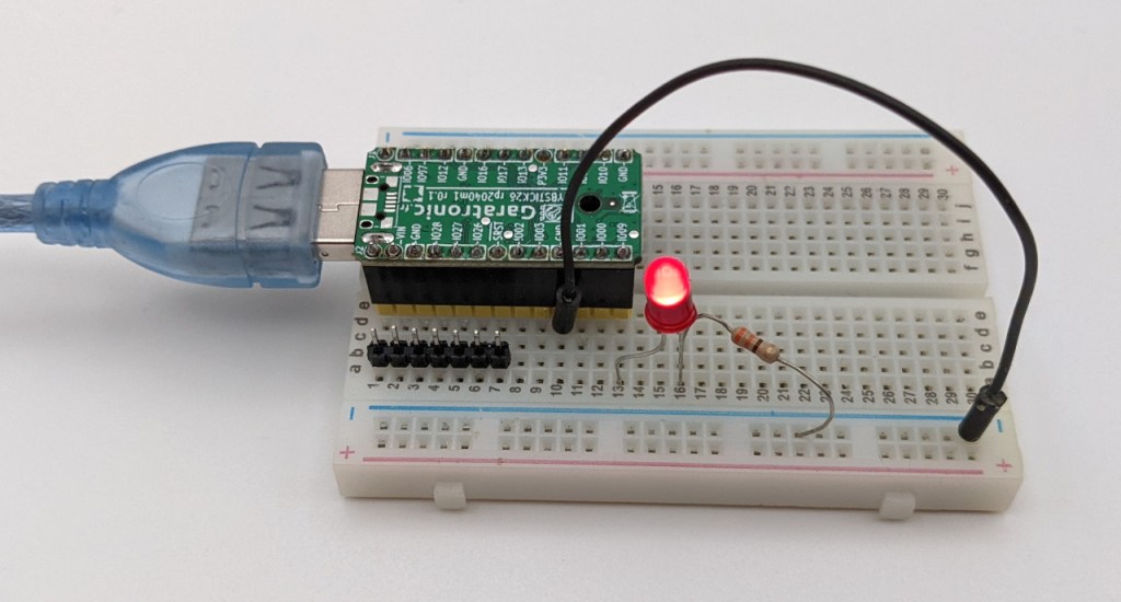 Pour pouvoir utiliser la PYBStick RP2040 directement avec une breadboard, j’ai simplement rajouté quelques connecteurs males. En plus on voit le nom des pins (désolé, je sais que je vous en ai déjà parlé, mais je suis vraiment trop content…).