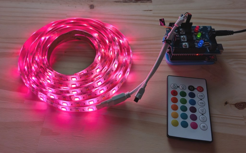Si tout fonctionne correctement, il ne reste plus qu’à ajouter les autres touches de la télécommande et à composer les couleurs correspondantes.