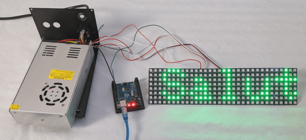 Et comment en relier plusieurs pour fabriquer un grand panneau d’affichage (avec le texte qui défile).