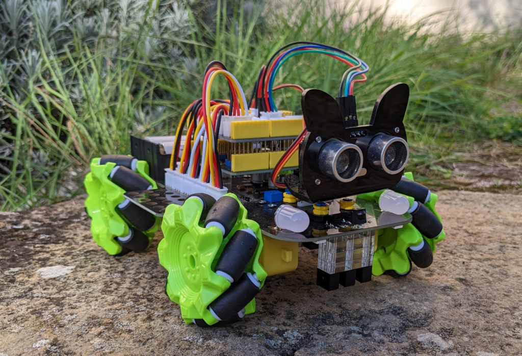 Parmi les nouveautés de cette 3ème édition, vous découvrirez un nouveau robot avec des roues Mecanum (Keyestudio 4WD). Il est très amusant parce qu’il peut avancer « en crabe », en diagonale ou tourner sur lui même.